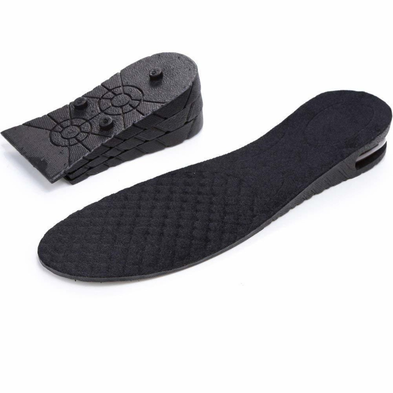 中敷きは3段階式になっており、1段目3cm、2段目2cm(計5cm)、3段目2cm(計7cm)と高さの調節が自由にできます。サイズはフリーサイズ(22.5cm~27.0cm)で男女兼用となります.数量:2個(1ペア).カラー:ブラック。