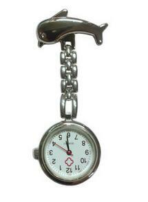 ナースウォッチ かわいいイルカ柄 逆さ文字盤 シルバー 7004