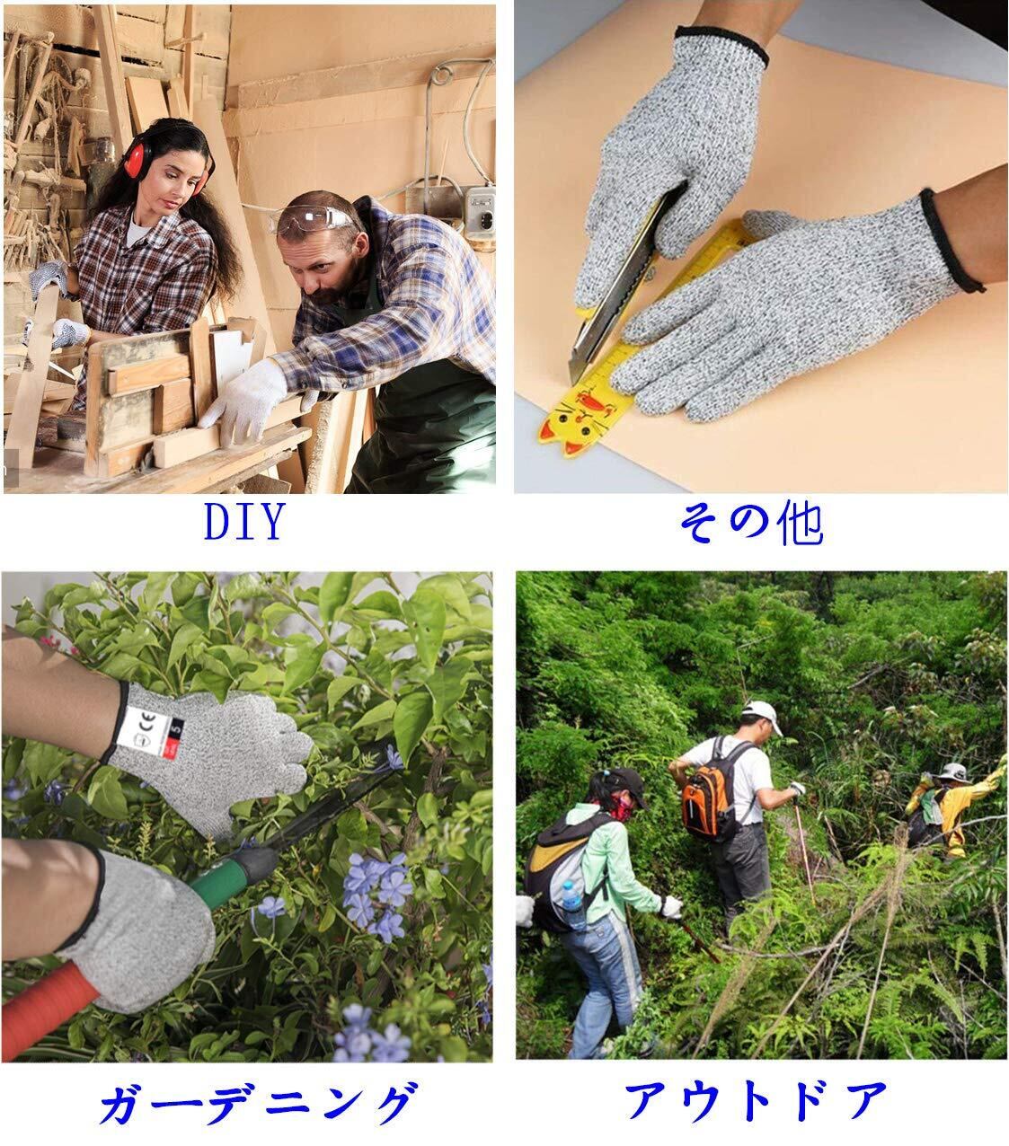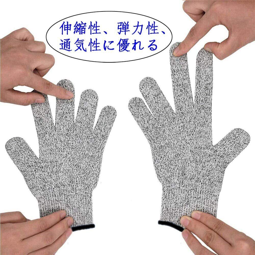 【防刃手袋素材】:68%超高強度HPPE 、20%高強度ポリエステル、9% ナイロン、3%スパンデックス。 【使いやすいフィット感】軍手タイプになるためとっても使いやすいくフィット感も抜群です。通常の軍手と同様にお使いいただけます。軍手タイプのため通気性もよく蒸れずに利用できます。 【防刃と耐摩耗性】刃物などを使用したり、工具の取り扱い時に便利で、園芸やアウトドアや料理の時でもお使い頂けます。 高強度ポリエチレン繊維とステンレスワイヤーの組み合わせにより、刃物によるカット耐性を備えた手袋です。本防刃手袋は高性能材料HDPEによって編まれ、強度は普 通の軍手の10倍以上、皮革手袋の4倍以上に達する。 【高い弾力性】:スパンでックス生地を含んでいる弾力性に優れて、フィット感抜群で、手袋をはめる間に作業中の指も自由に伸縮し、通常の手袋より柔軟性アップです。 【幅広い適用性】:キッチン、セキュリティ、アウトドア、園芸、段ボールの解体、運転、大工、炊事、草切り、DIY、廃棄処理、実験、地震救援防災など幅広くご使用いただける作業用手袋です。