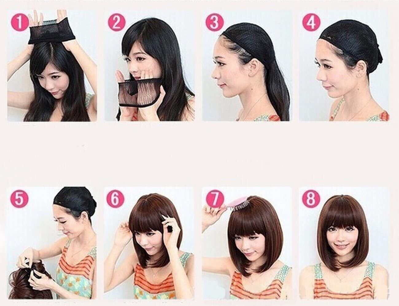 ウィッグ ネット付き 黒髪 ウィッグ ロング ストレート ぱっつん前髪 70cm
