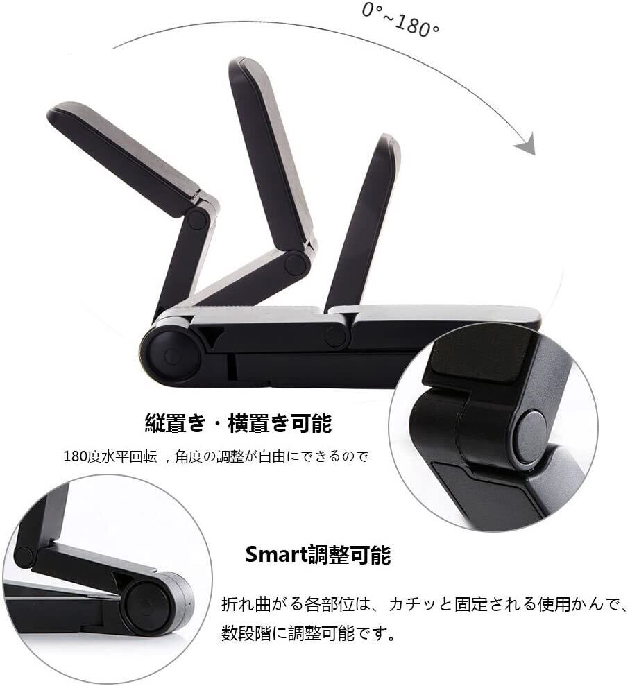▪材料:ABSプラスチック、角度の調整が自由にできるので、iPadやタブレットPCの縦置き・横置きはもちろんのこと。スマホの縦置き・横置きにも対応しています。
