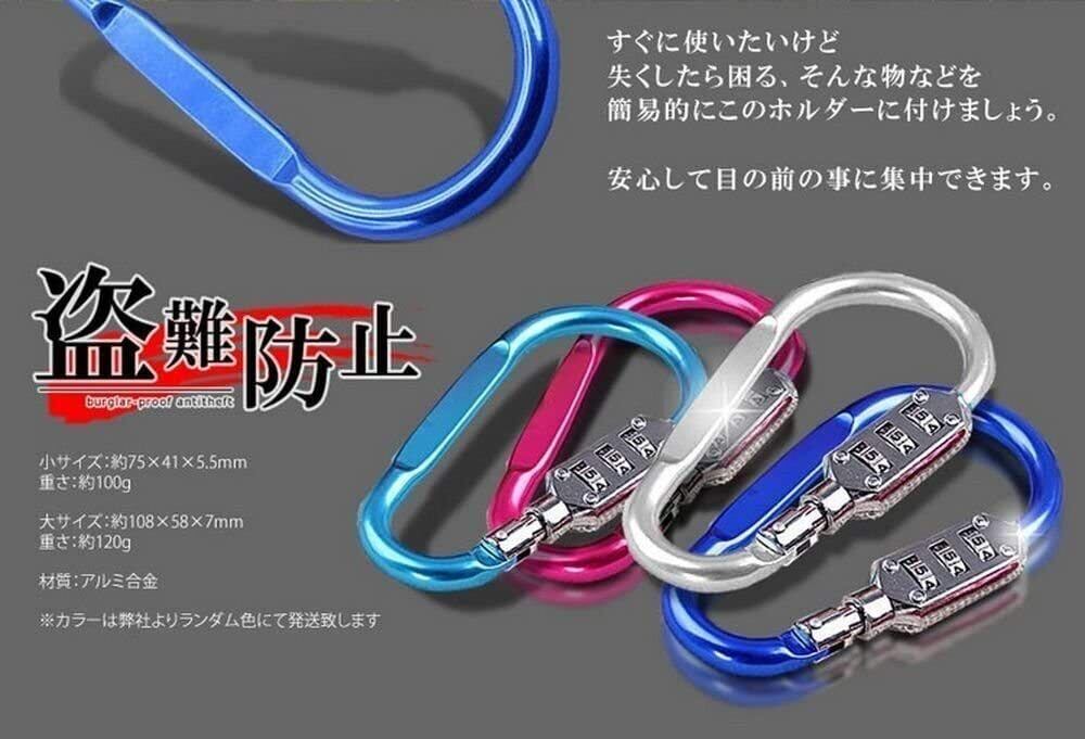 盗難防止や簡易ロックとして大活躍。使用用途は無限大!大事な物に鍵をかけよう。 ヘルメットホルダーで簡単につけれて安心のナンバーロックで盗難の失敗もなくなります。 ナンバー式で番号は好きな数字に設定可能。 カラビナタイプなので使わない時も持ち歩きがラクラク!! 商品サイズ 大サイズ:約108×58×7mm 重さ:約120g 材質:アルミ合金
