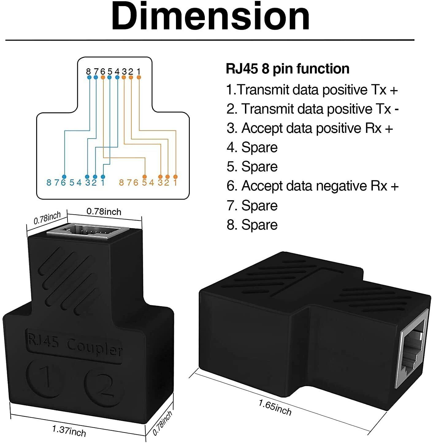 イーサネットジャック:カプラキーストン(メス toメス )タイプ、8P8C、CAT5eとの下位互換性があります。メス-メスタイプでお手元のLANケーブルの接続コネクタをよく守れ、LANケーブルの使用時間をも延長可能になります。 良質素材採用:エコなABS樹脂素材で、良好な剛性、耐衝撃性、耐熱性、耐低温等の性能をよく実現可能です。金メッキコンタクト部とスナップイン式の固定クリップで、接続の安定性、耐腐食性等を保証しています。 RJ45インラインキーストンジャックカプラーは、TIA/ EIA568-Cの規格に準拠したカテゴリ6の性能を満たしています。1.75mm厚さのPCB基板、固定的なRJ45(メス)プラグ、シールド機能でEMI,RFI等の外部の電磁干渉から守られ、ネットワーク信号を維持出来ます。 二つのRJ45メスポートを同時に使用することはできませんので、ご了承ください これは、この製品がTIA568B標準に準拠しているためです。したがって、ネットワークデータ配布では、T568Bラインシーケンスに従って、このRJ45アダプターは、主にPCとPC /スイッチおよびスイッチ/ PCとADSL光モデム間のデータ交換ですが、PCとTVまたはPCとスイッチ間の交換には適していません。