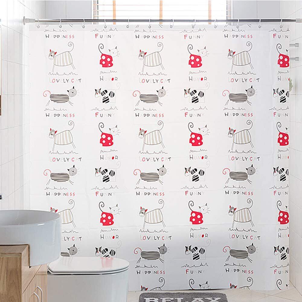 サイズ:約幅150cm×丈180cm、エコ素材:PEVA。 輻射熱を反射させ防風性にも優れ夏涼しく冬温かい!色が褪せることはない。 オシャレな柄:かわいい猫柄なので、圧迫感もありません。バスタイムが楽しくなります。 抗菌性があるため、カビの〓殖を防ぎます。お手頃なシャワーカーテンです。 シャワーの水滴を飛び散ることを防ぎ、部屋を濡れにくいです。お風呂をする時、湿気や暖気を外に逃がしにくいので、保湿保温効果もあります。 ユニットバスはもちろん、浴室以外のお部屋でもお使いいただけます。 トイレ、子供部屋、キッチンやリビングなど、間仕切りとしても使えます。収納棚の目隠しとしても可能です。