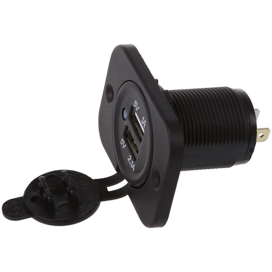防水蓋付き 防水仕様なので雨でも安心。 高品質の材料、高電流に対する耐性、高温で作られており、耐摩耗性。 GPS等の充電、携帯電話、車の中、トラックなど広く使用される。 動作電圧:12V 出力電圧:5V/ 1A; 5V/2.1A。